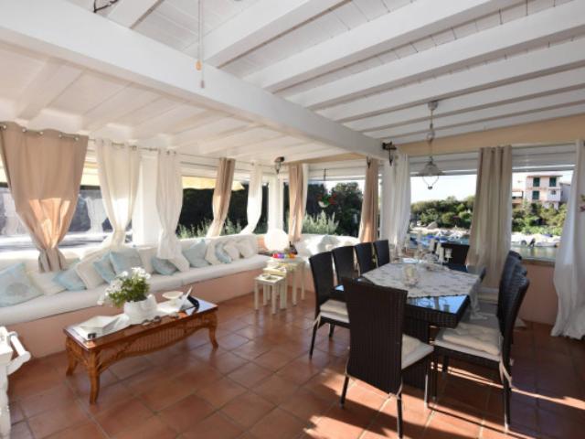 CHARME LIVING propone in vendita esclusiva e prestigiosa Villa in posizione unica ed invidiabile, affacciata sulla Darsena di Porto Rotondo, con vista mozzafiato, piscina, ampie verande e accesso diretto al porto turistico. La proprietà, che gode di una bellissima vista mare e sul porto, ha un ampio giardino privato di 500 mq su due lati, una dependance per gli ospiti e ingresso diretto al porticciolo. Internamente si trova in ottimo stato ed è disposta su due livelli abitativi. Al piano terra troviamo la zona notte che è composta da 5 camere da letto e da 5 bagni mentre al piano superiore troviamo la zona pranzo, il soggiorno con balcone vista mare, 1 bagno, la cucina con accesso alla zona piscina tramite scala esterna e una grande veranda coperta di 50 mq con stupenda vista sul porto turistico. Nella dependance troviamo due camere e un bagno. E' inoltre presente un patio attiguo alla piscina attrezzato con cucina. La Villa sorge su un terreno di proprietà recintato con muro in pietra da campo. Completano questa meravigliosa proprietà 4 posti auto coperti, un'area barbecue, una veranda coperta e una grande piscina. La costruzione è stata realizzata con i materiali tradizionali usati nella zona ed è rifinita in modo eccellente. Possibilità di posto barca incluso nel prezzo.