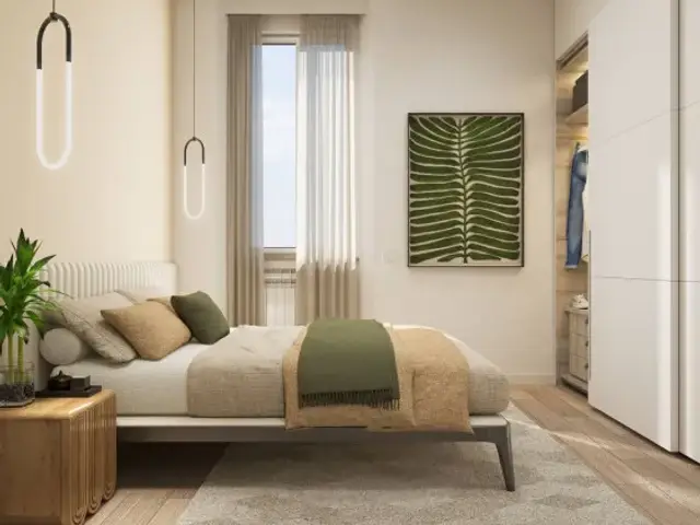 Si compone di soggiorno con cucina, camera da letto matrimoniale, disimpegno, comodo bagno finestrato con doccia e lavanderia.